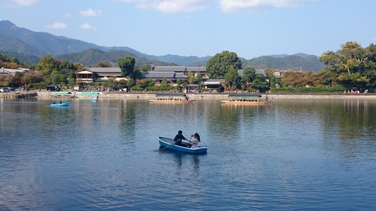 京都市、嵯峨野嵐山地区の渡月橋スグ上流