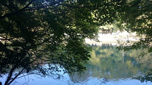 日本最初の庭園 大澤の池 北八丁 との表示あり