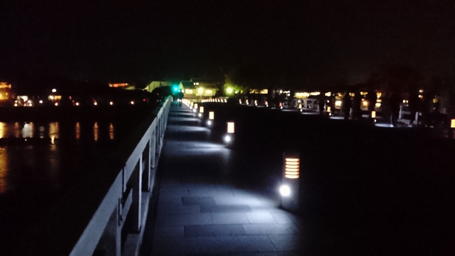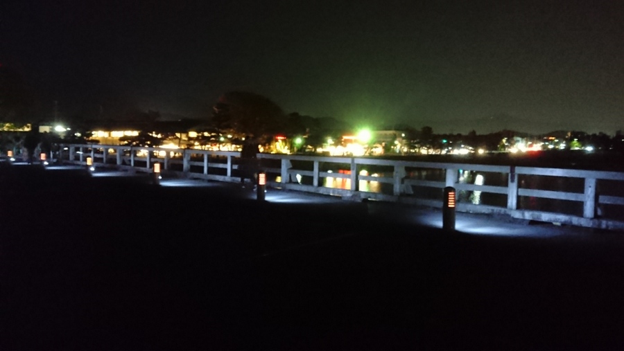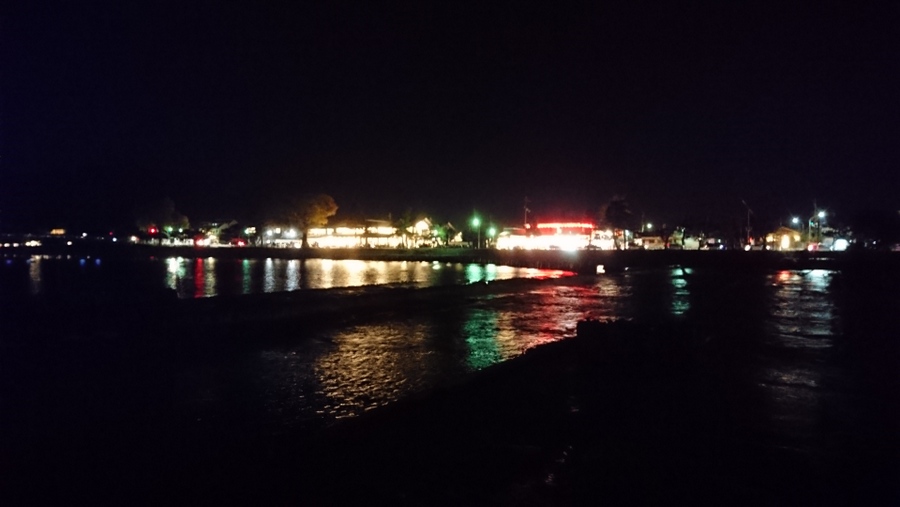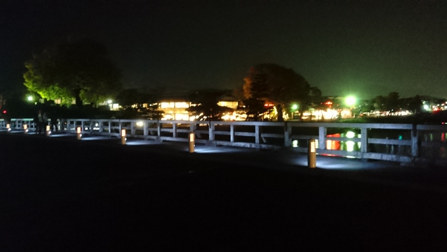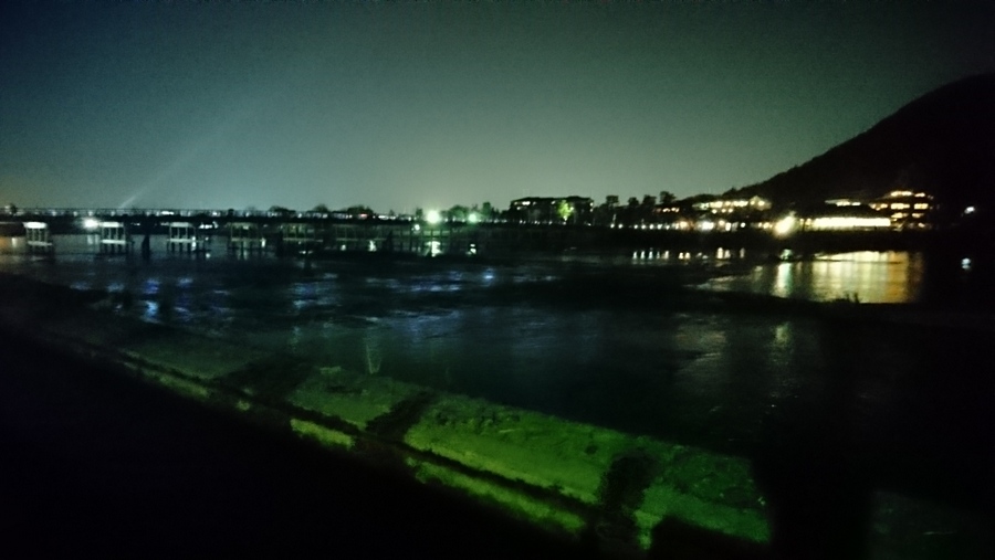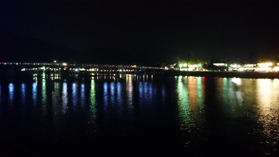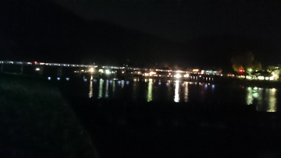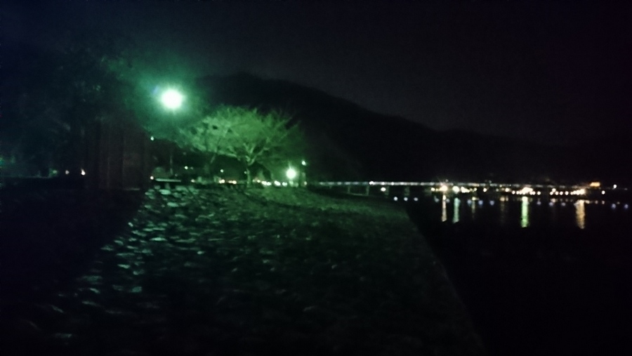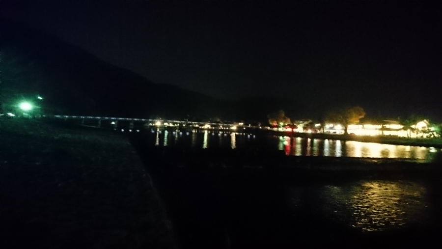 嵐山・渡月橋界隈の夜景〜ぶらり散策・一人旅、エコ旅。京都の情緒ある旅館・料亭も 国内・海外から多くの観光客が集う古都京都の観光スポットの一大スポット「嵯峨嵐山」の嵐山・渡月橋周辺夜景 ENESYSPORT いつものデジカメ写真アルバムより解像度を大きめに・・撮影写真をアップする際の解像度縮小を稍抑えました! 三脚なし・フラッシュなし・逆に手振れ有り・・・いつまでも上達しない俄かカメラマン?の作品・・・登場風景とデジカメ機能がサポート
