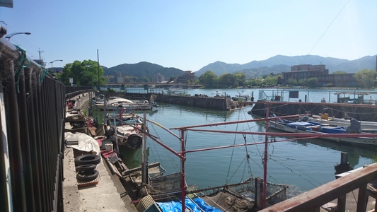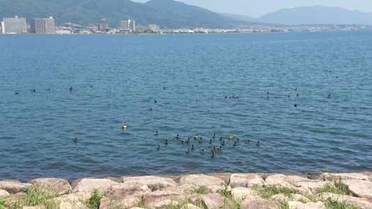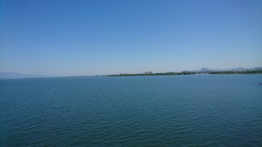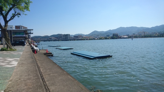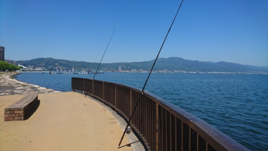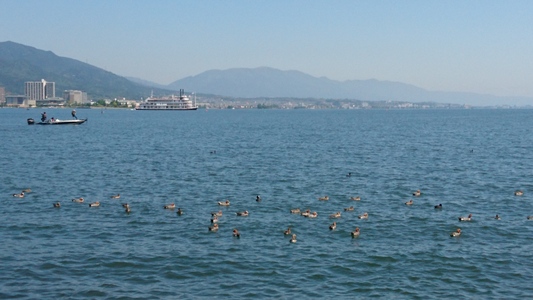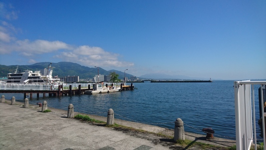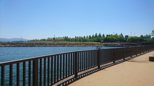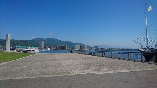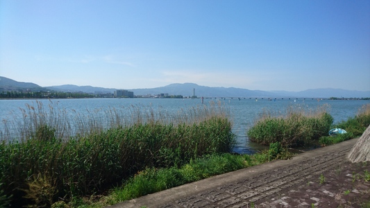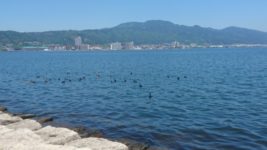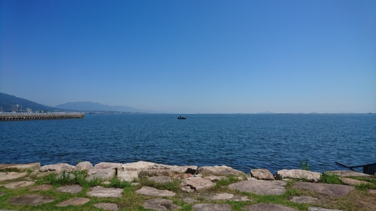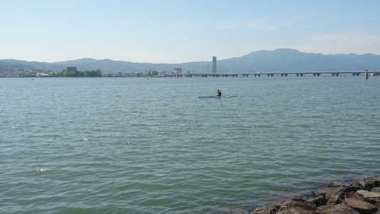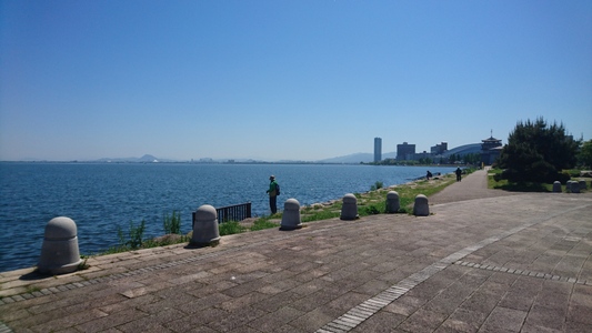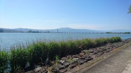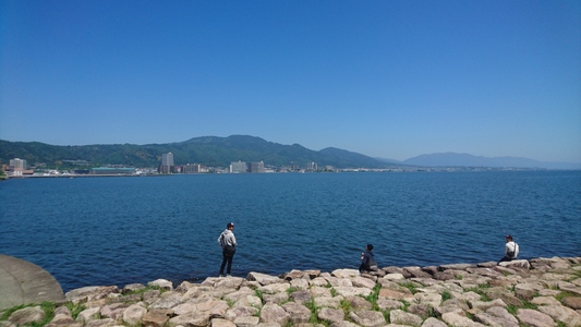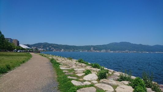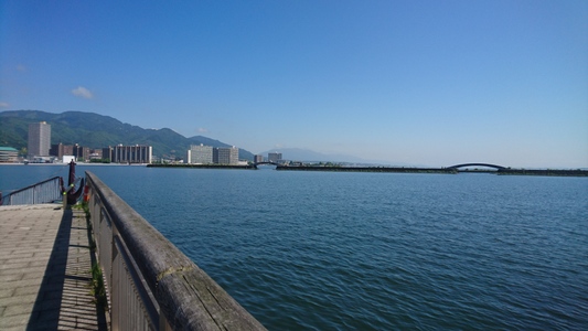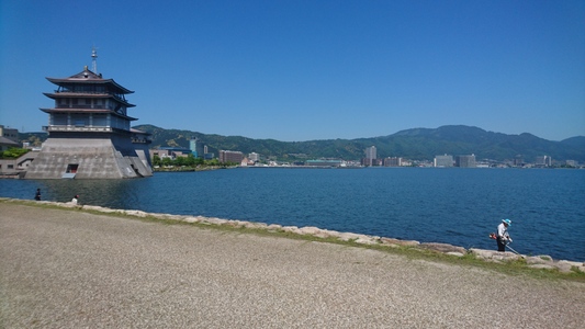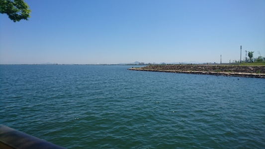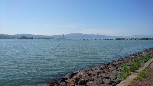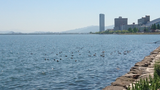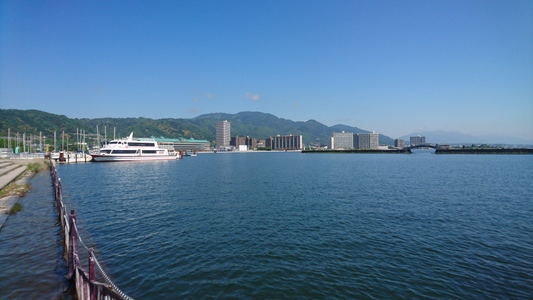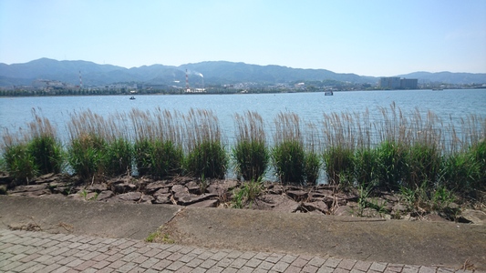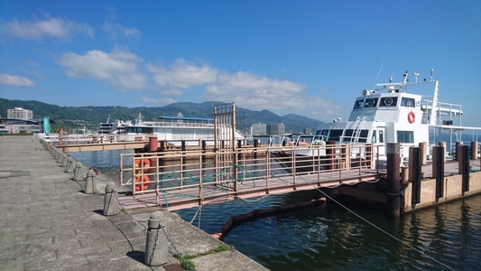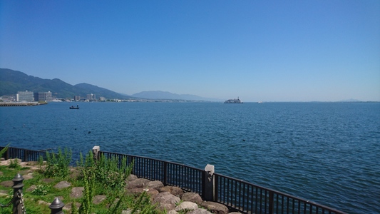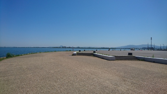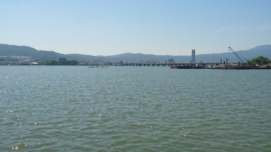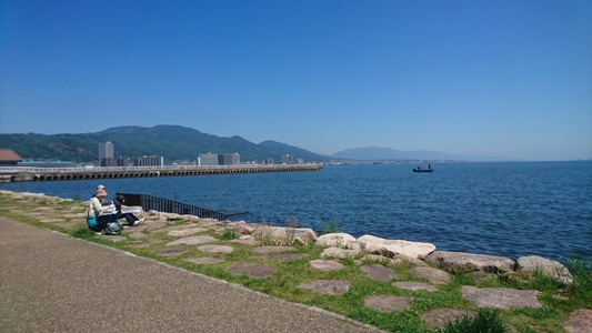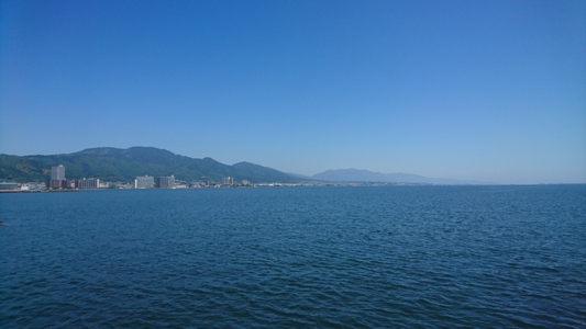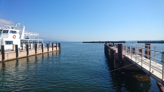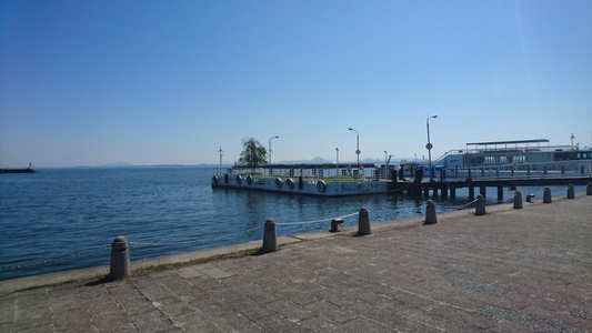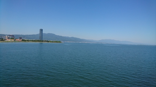 滋賀県大津市の大津港(浜大津港) 琵琶湖湖面、向こうに見えるは・・・ |