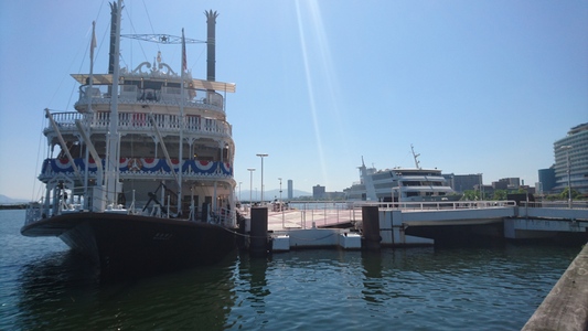 滋賀県大津市の大津港(浜大津港) 右側は遊覧船「ビアンカ」、左側は遊覧船「ミシガン」 琵琶湖汽船公式ホームページ|ミシガンビアンカ-滋賀県 |