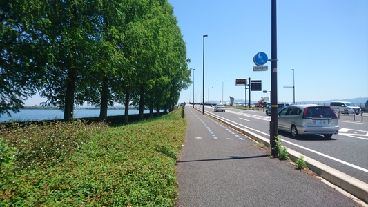 一昨年の7月、ここより侵入して琵琶湖湖岸を走る |