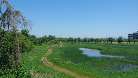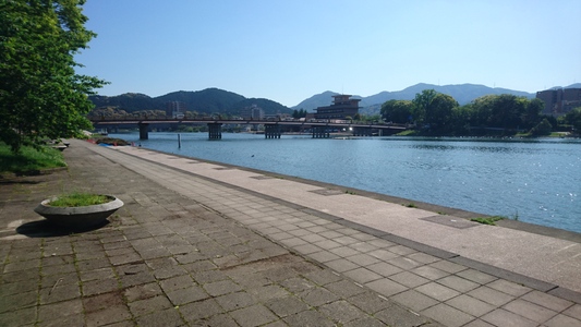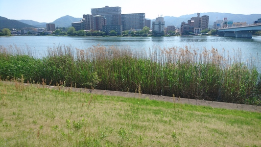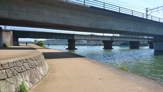 瀬田川、川岸沿いに「瀬田の唐橋」に向かう |
