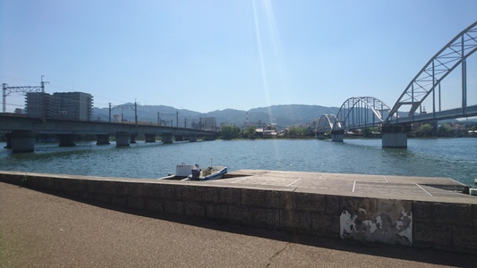 瀬田川沿いに散策。「瀬田の唐橋」を渡りJR石山駅より帰路に。昔なら馬に跨るところ乗りこなせない!今風の電車で