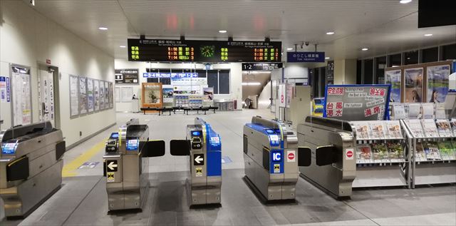 朝早く、人影なければ 文明の利器、改札機とか 人手不足の先取りだ! |