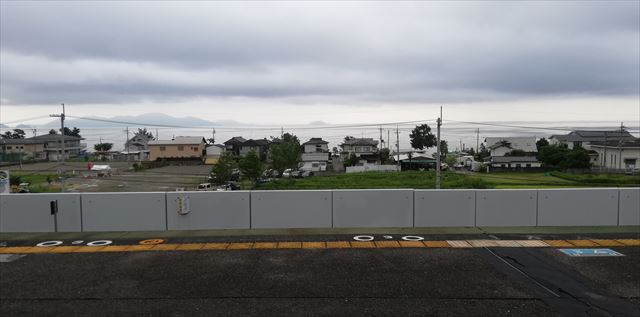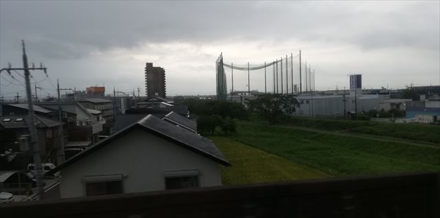 向こうのゴルフ練習場の ネットの先には 琵琶湖大橋が・・・ 小さく写っています |