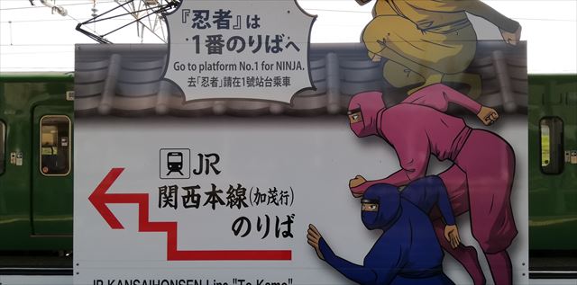 『忍者』は1番のりば へ JR関西本線(加茂行き)のりば は矢印方向へ |