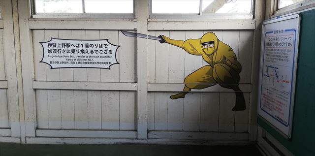 伊賀上野駅へは1番のりばで 加茂行きに乗り換えるでござる |