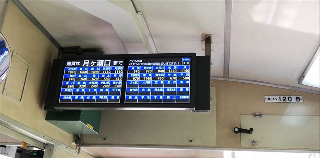 列車内には料金表示案内が 無人駅にワンマンカーの 組合せで必需品? |