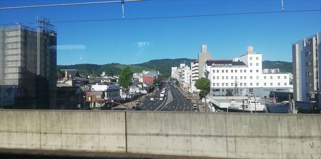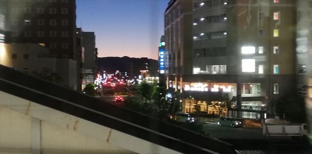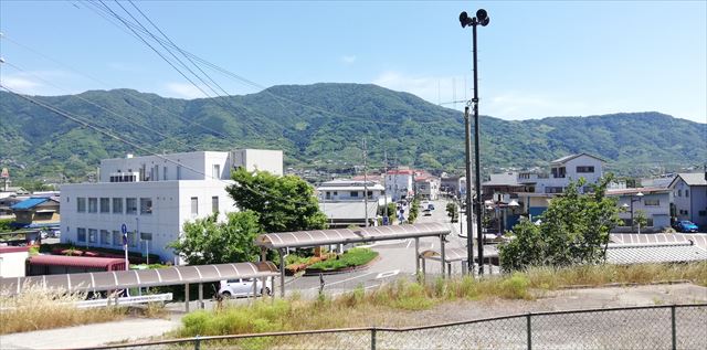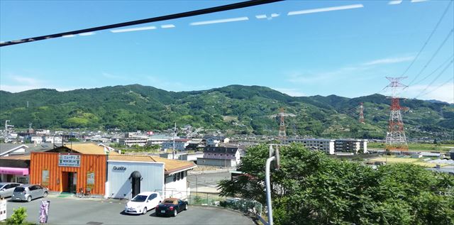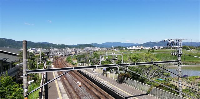 ![]() JR嵯峨野線(山陰本線)、馬堀駅ホーム階段より亀岡市中心街を望む |