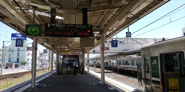 ![]() JR嵯峨野線(山陰本線)、馬堀駅ホーム 〜 トロッコ亀岡駅への乗り換えインバウンド客多い |