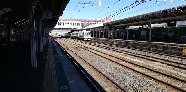 ![]() JR嵯峨野線(山陰本線)、馬堀駅ホーム |