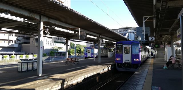![]() JR嵯峨野線(山陰本線)、京都駅ホーム 久し振り、朝のモーニング・サービス |