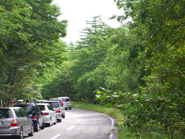 当時の我が愛車、「軽」でも車中泊に何度も付き合ってくれました 登山客の駐車の列に、やっとスペースを見つけて・・ |