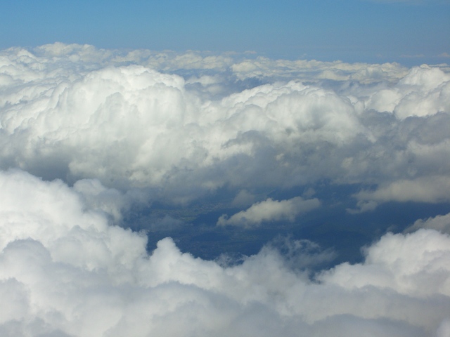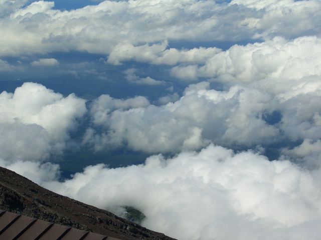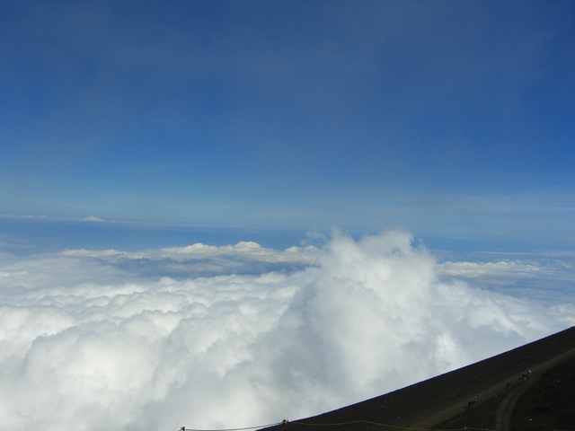 こちらから下界の様子は見えない、下界は雲に覆われて |