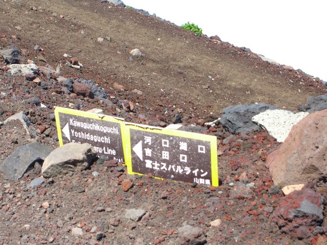 ここは 下江戸屋分岐 左は、吉田口・富士スバルライン五合目 あちらは須走口五合目 |