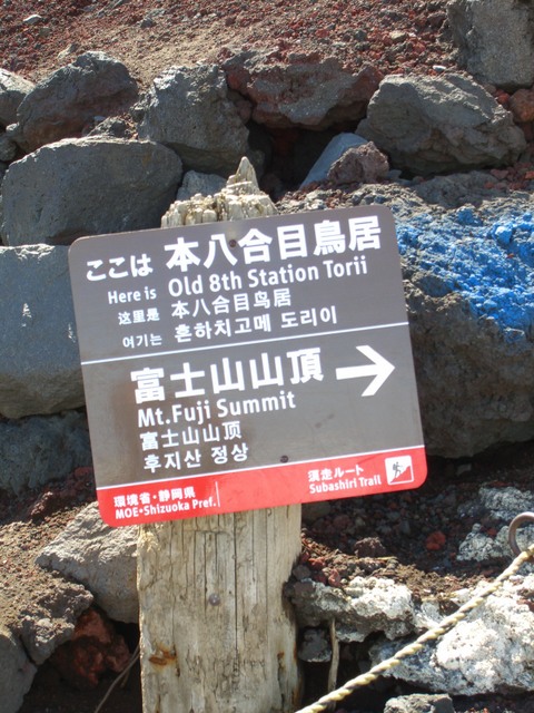 ここは 本八合目鳥居 富士山山頂 は右側 |