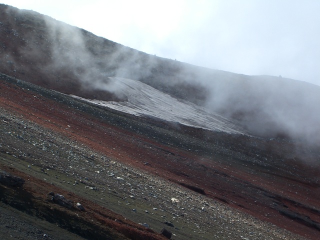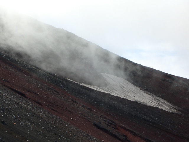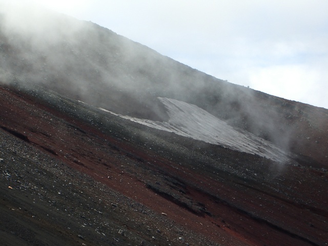富士山の山肌も向きと形状によっては夏場まで残雪が・・ |