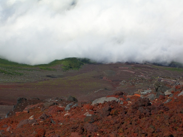 下界の天気は曇り空、霧がかかり富士山の頂きの姿は拝めず |