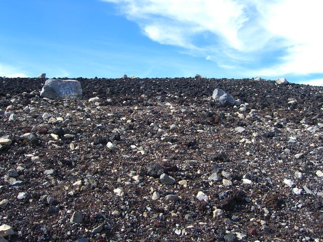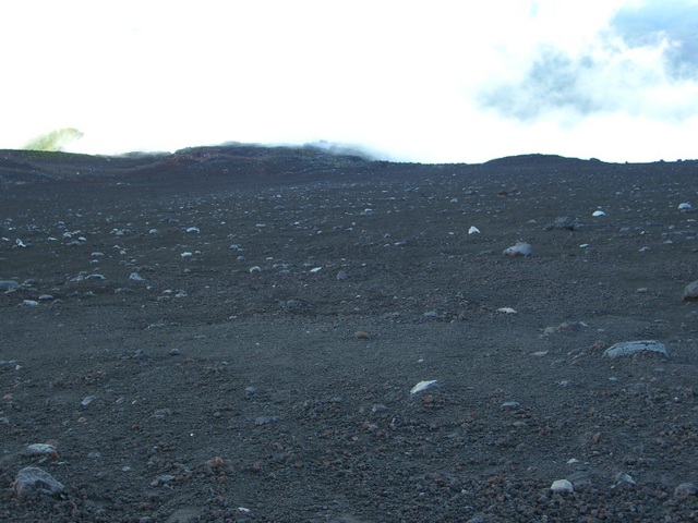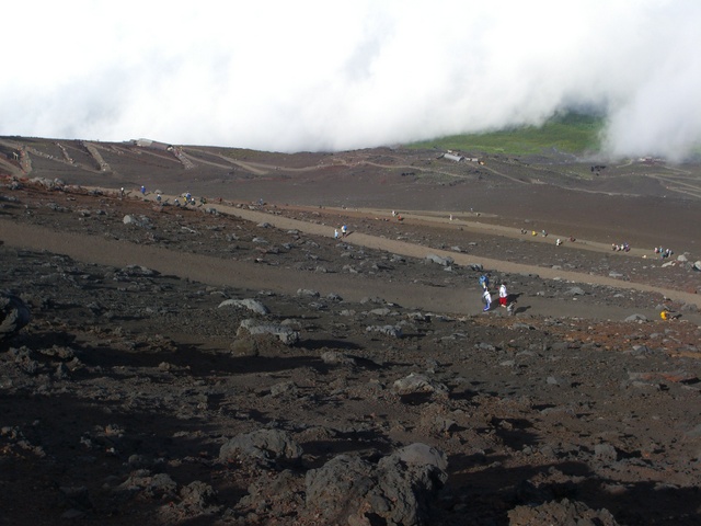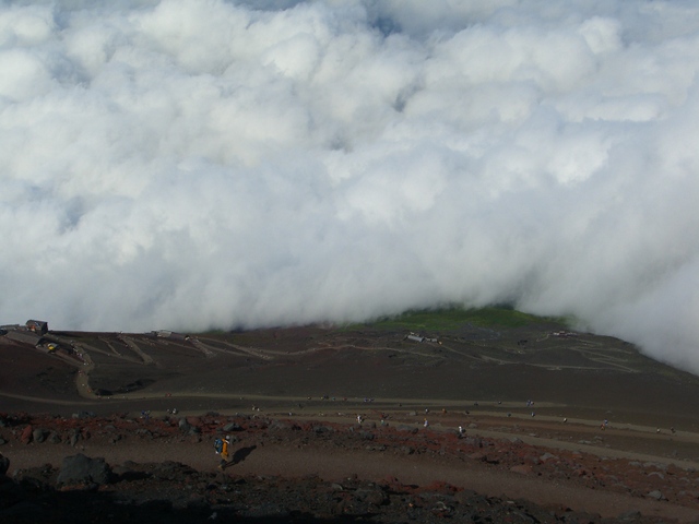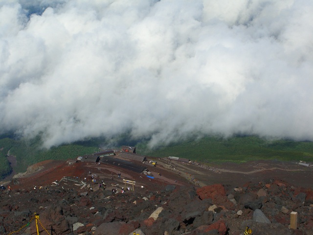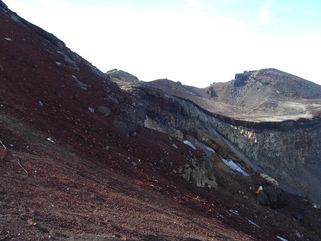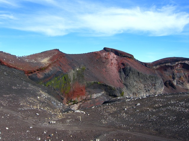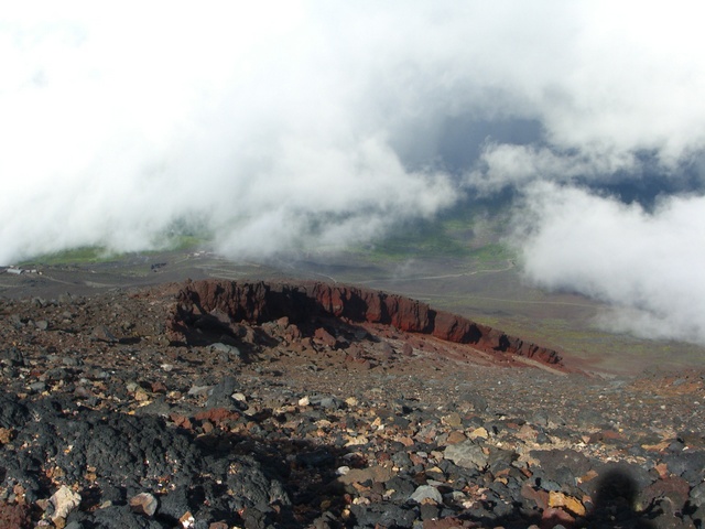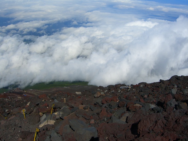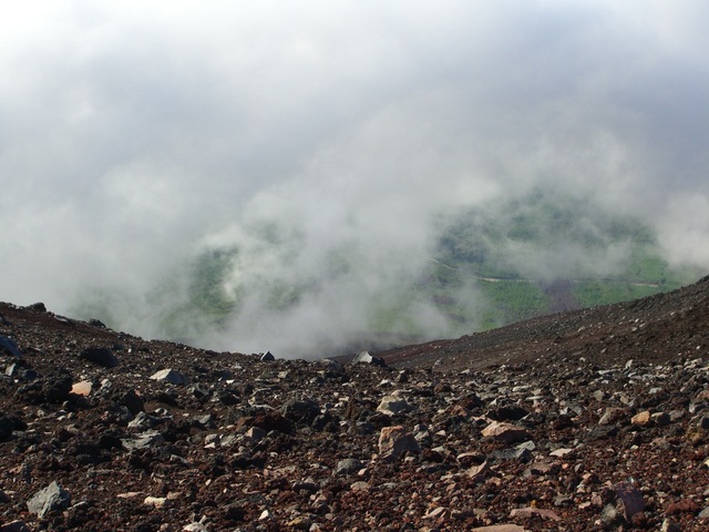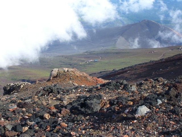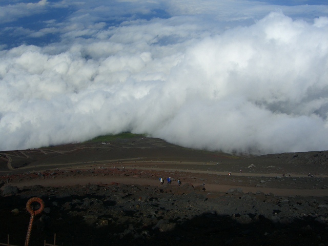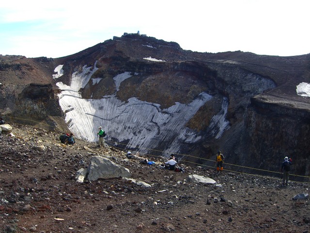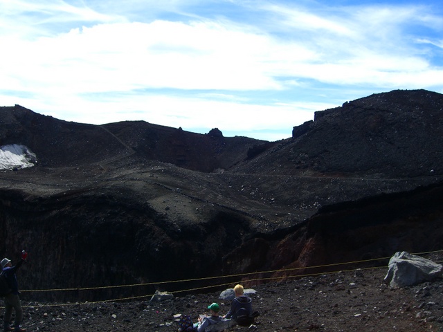 富士山火口、今は噴出無し。その点、阿蘇山の火口を覗いた際はビビった(中学修学旅行) |