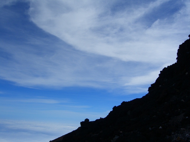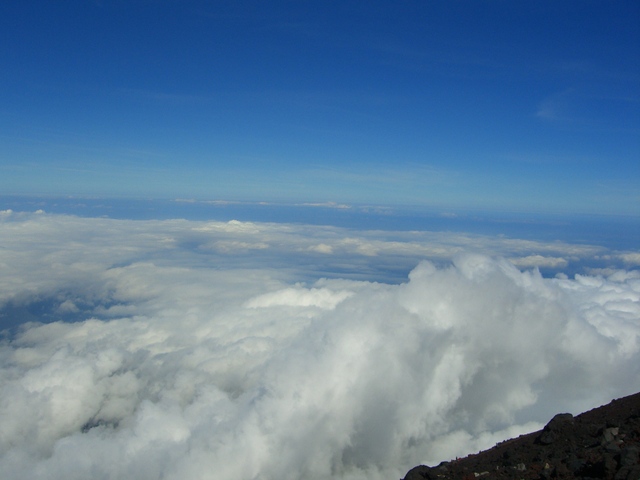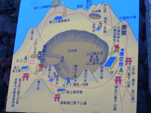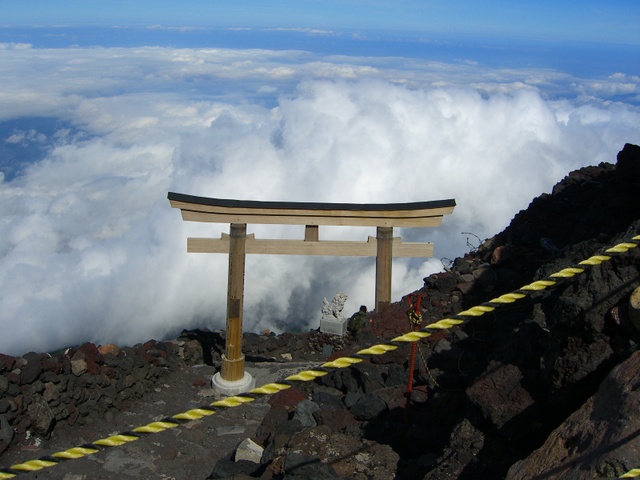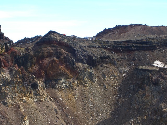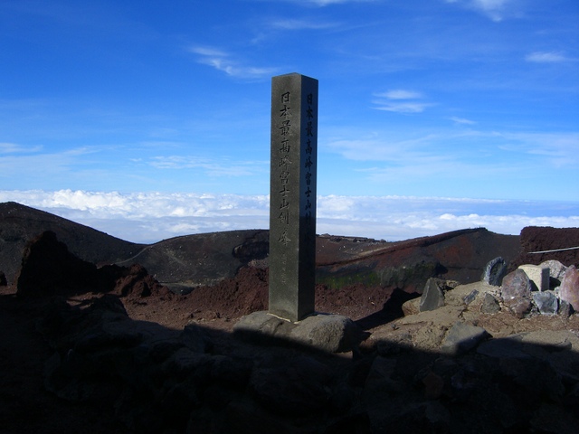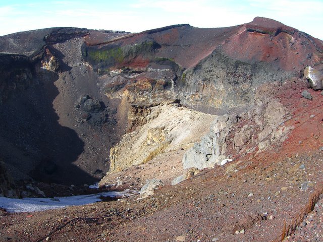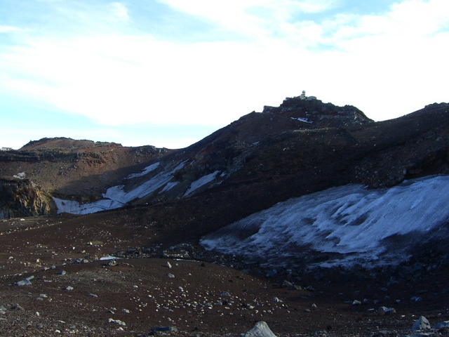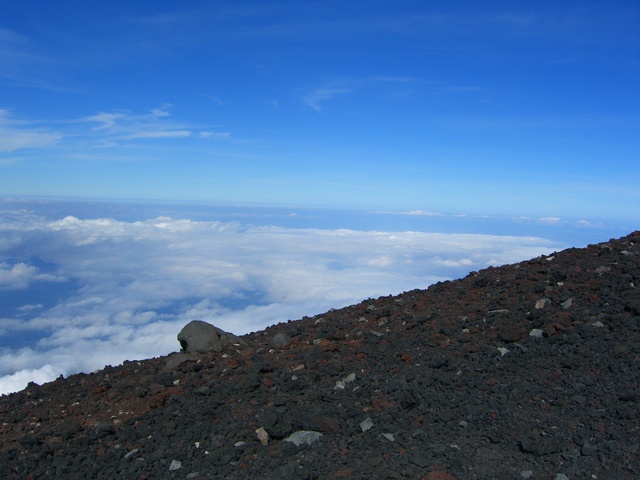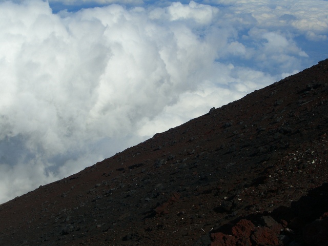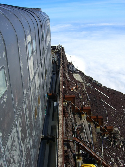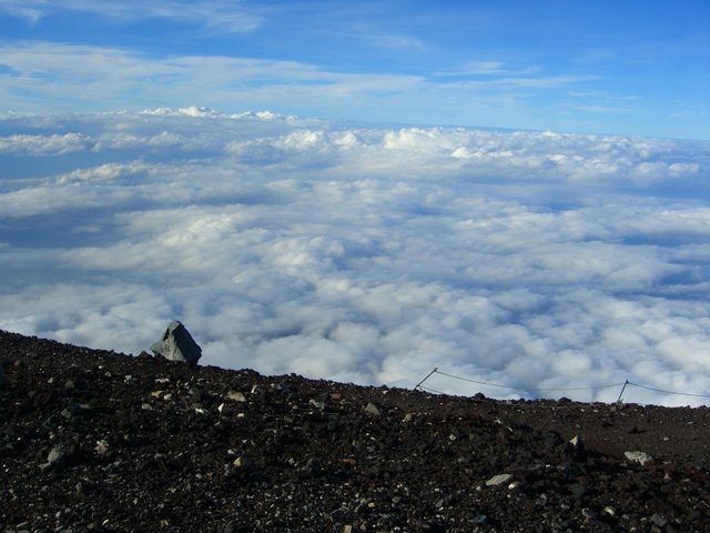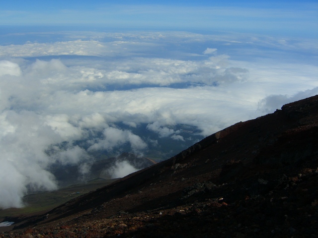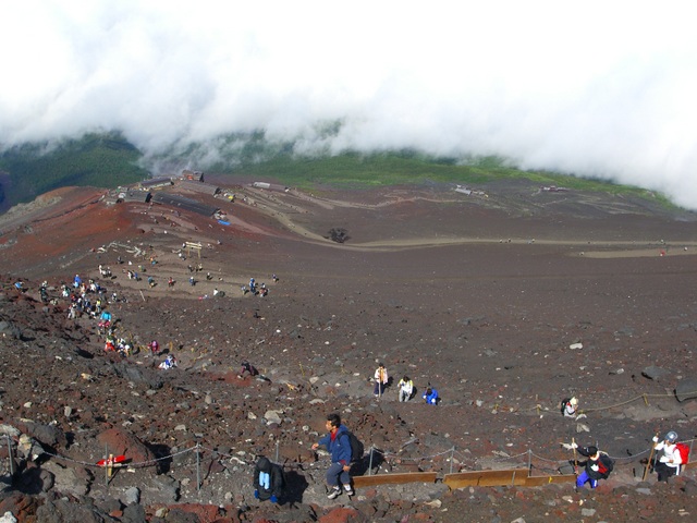 富士山火口、今は噴出無し。その点、阿蘇山の火口を覗いた際はビビった(中学修学旅行) |