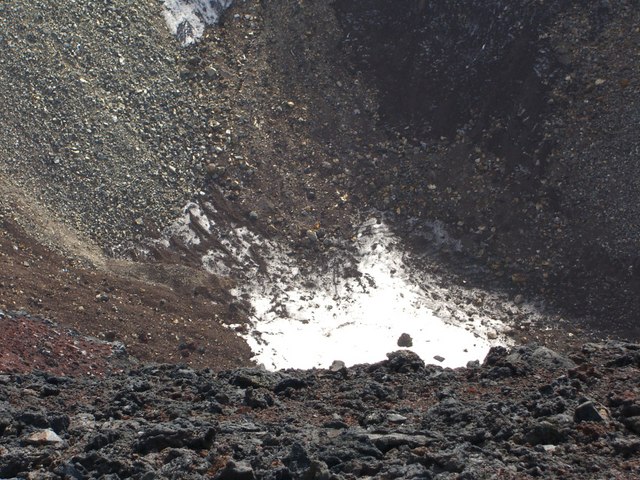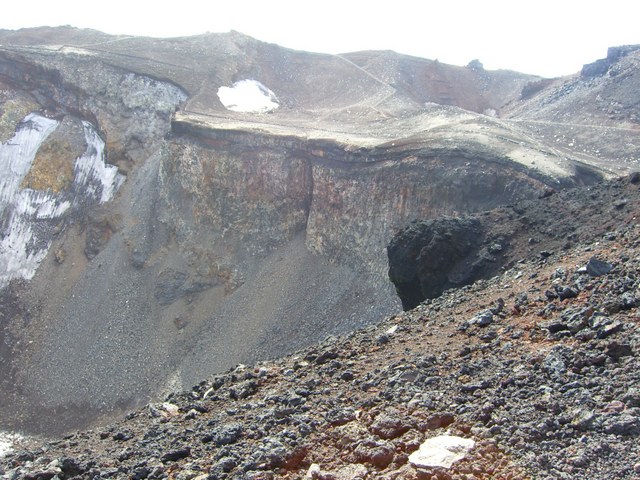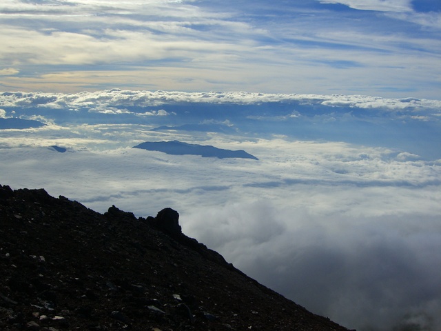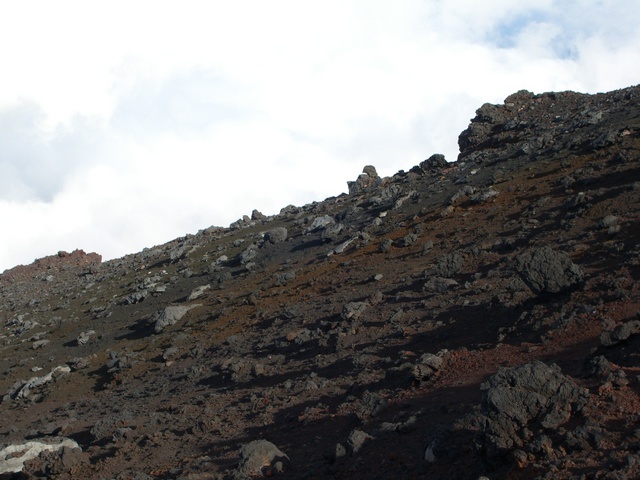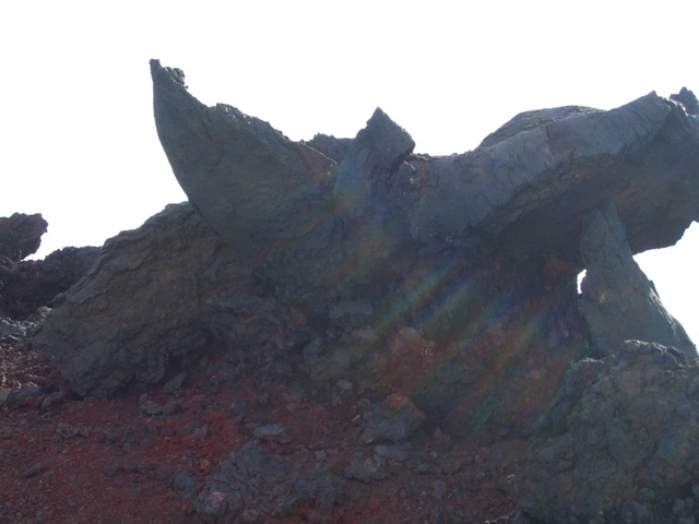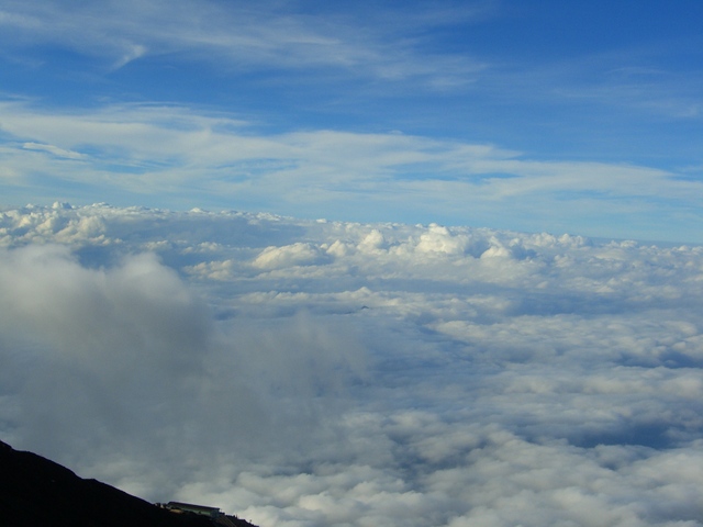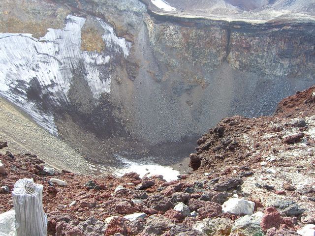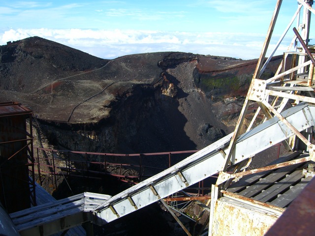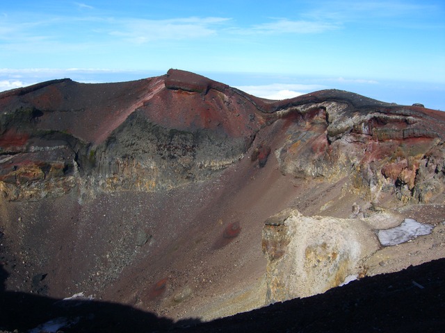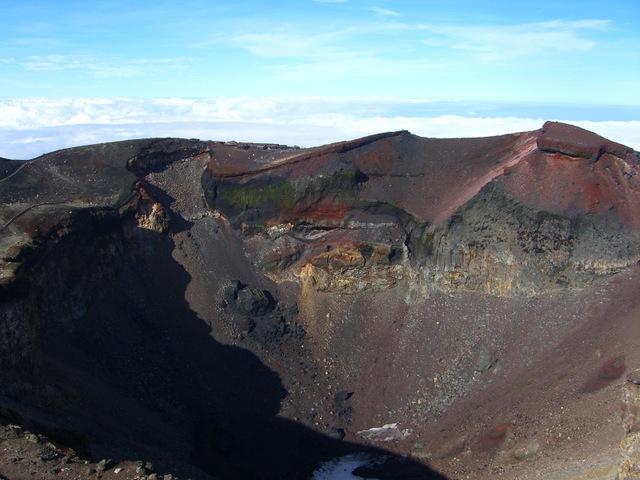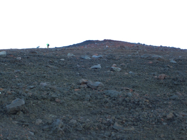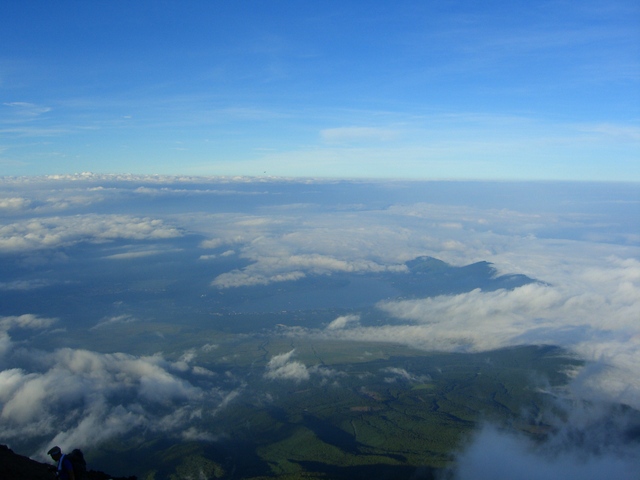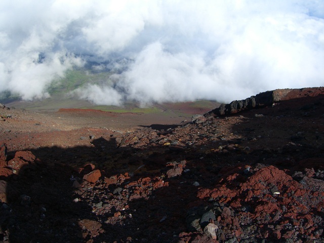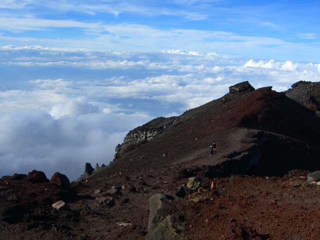 富士山火口、今は噴出無し。その点、阿蘇山の火口を覗いた際はビビった(中学修学旅行) |