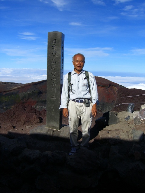 頂上にて撮ってもらった写真 ズックで杖無し |