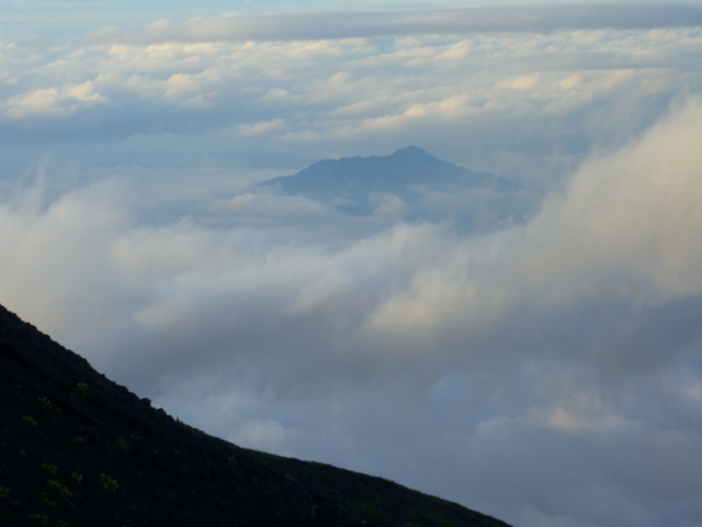下界に広がる雲が無ければ広範囲に眺望は良いだろうが「雲上の旅人」にはなれない |