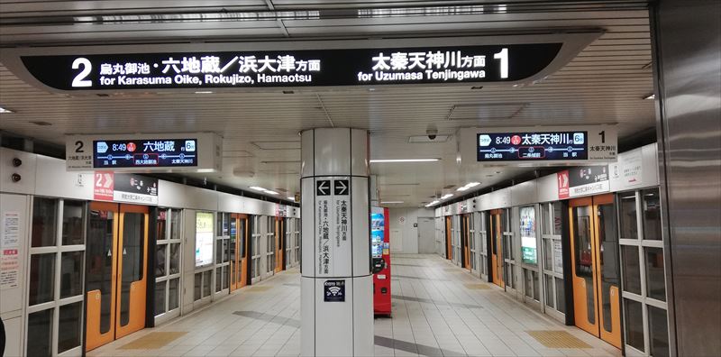![]() 烏丸御池駅で〜す。 知ってた?東西線から烏丸線に乗り換えるんだよ |