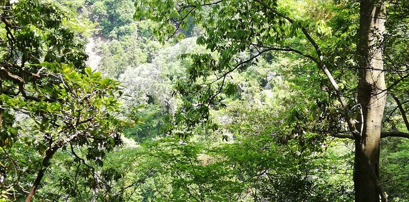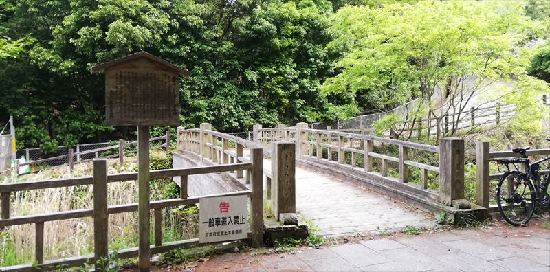 ![]() 小橋を渡り振り向いたが良かった! ここは立ち入り禁止! でも比叡山登山口の矢印も、アリガトウ |