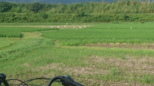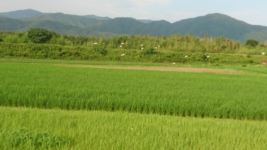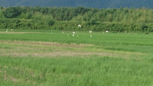 亀岡市内は田園風景も・・白鷺の戯れか日常か