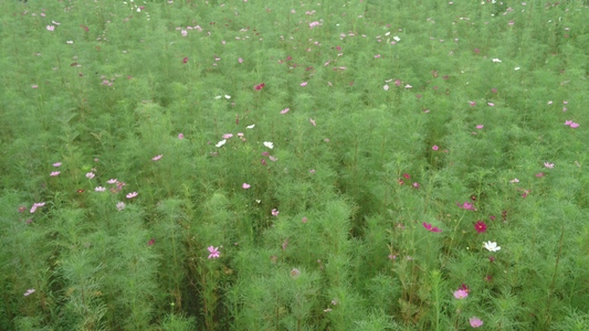 早くも国道9号線沿いにコスモス咲く・・畑の休耕期間、所有者の善意か