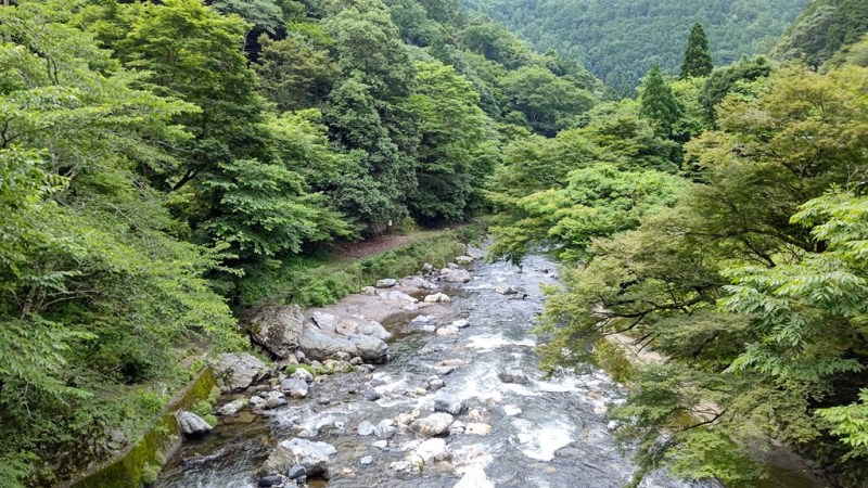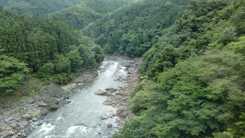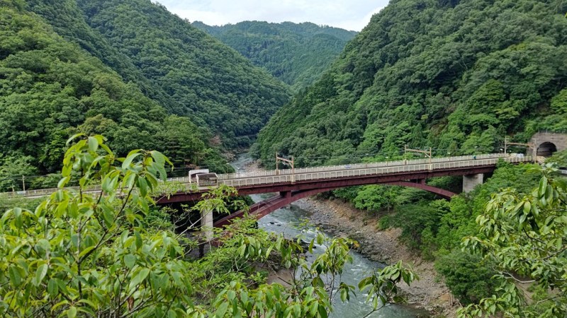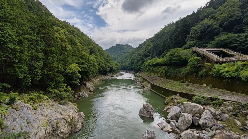 ![]() JR保津峡駅(嵯峨野線=山陰本線)は橋上駅(高架駅) 下を流れる大堰川?保津川?(桂川) |