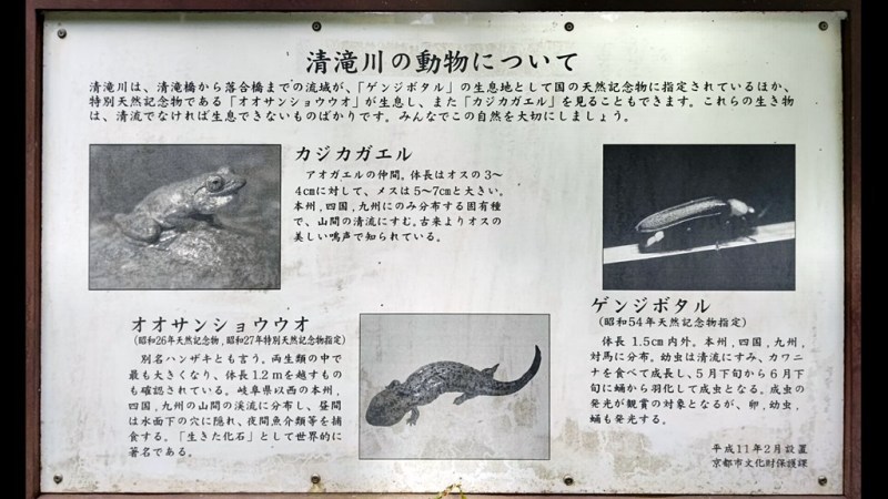 ![]() 清滝川の動物について・・・カジカガエル、オオサンショウウオ、ゲンジボタル |