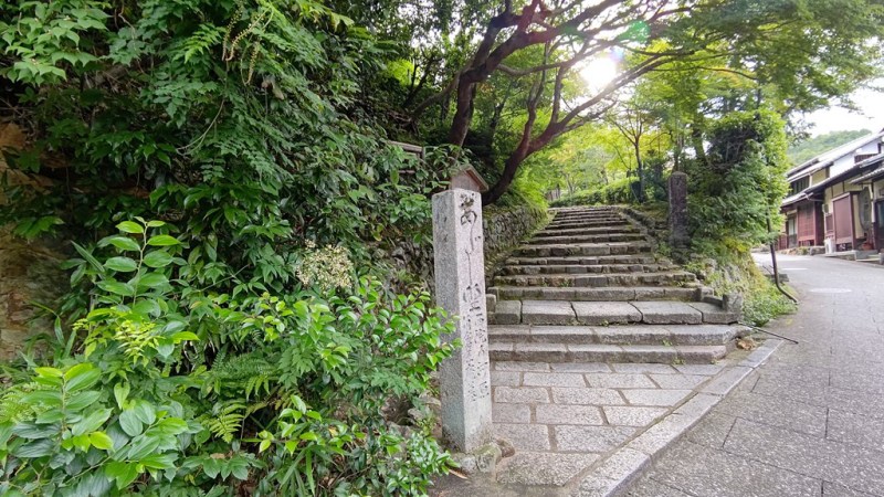 ![]() 分岐点、手前を右側へ進めば峠超え鳥居本・化野念仏寺方面。 今回は向こう側下りて清滝方面へ |