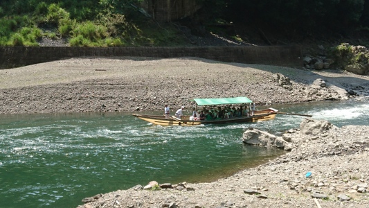 「保津川下り」の遊覧船がやって来ました |