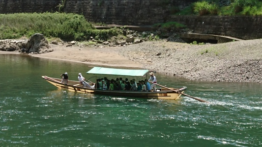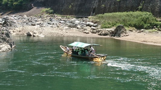 お次の川下り船が、こちらもたのしそうですよ 何処からお越しくださったんでしょうか |