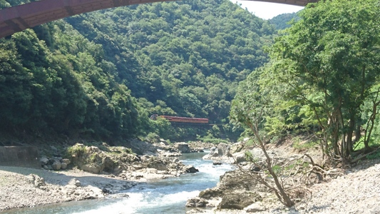 トロッコ保津峡駅 横を流れる桂川 |
