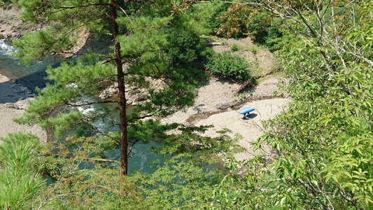 皆さまお疲れ様です。 河原で一休みされています |