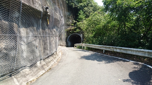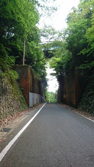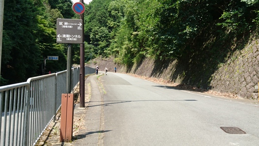 清滝トンネルの反対側辺りで振り返りました 右側 今来た道は、試峠=こころみとうげ=(清滝方面) 全長800m 左側 清滝トンネル(清滝方面) 全長500m |