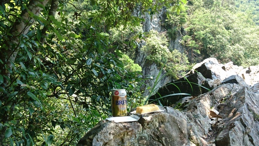 ここで一休みしよう、そうだ! 飲食用に二つばかりリュックに。 |