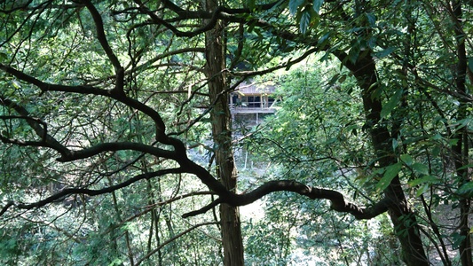 対岸には・・・今は使われて無いのかも・・避暑見物?紅葉見物?両方? 朽ちた感じの建物が・・・ |