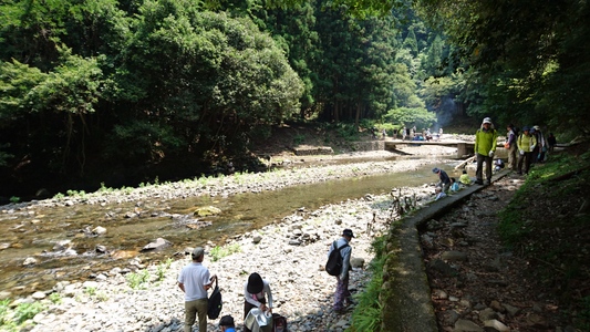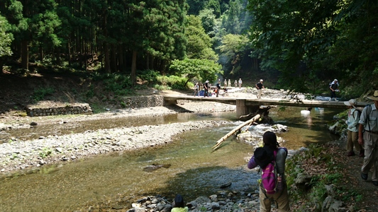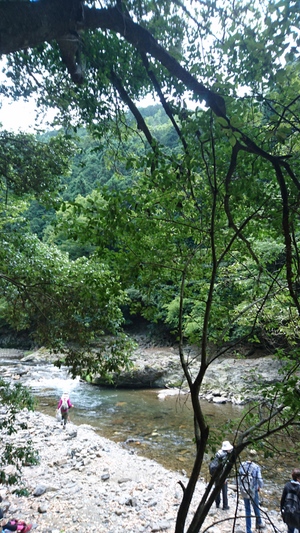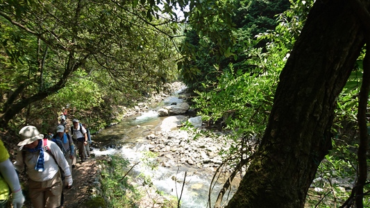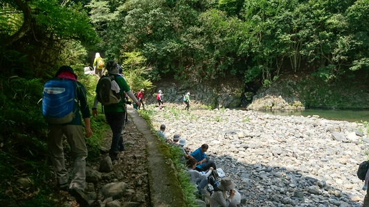 大勢のハイカーさん、ここ清滝川の清流見ながらのハイキング最高! |