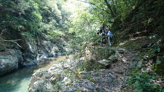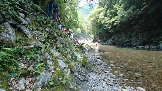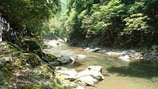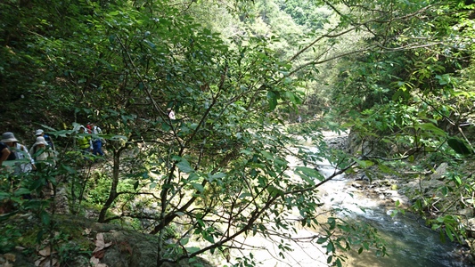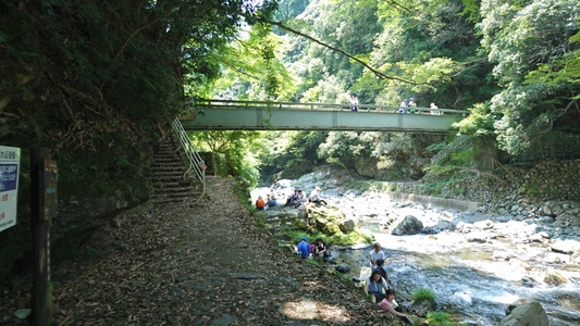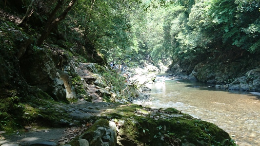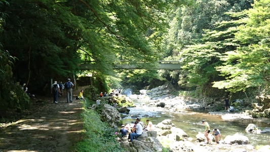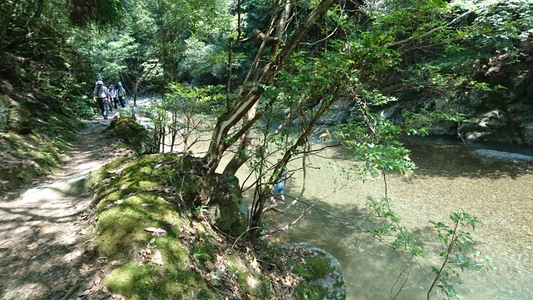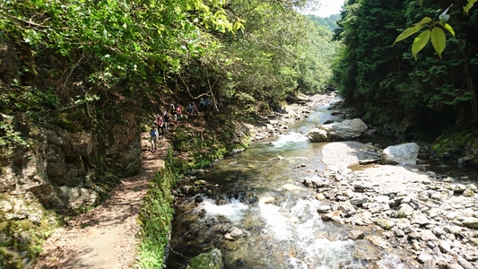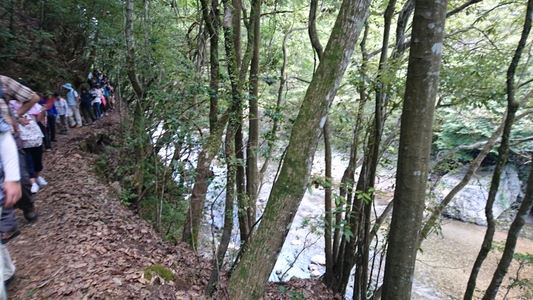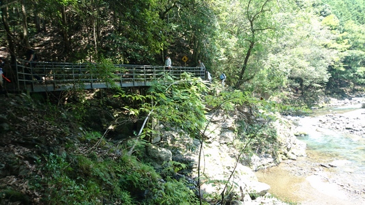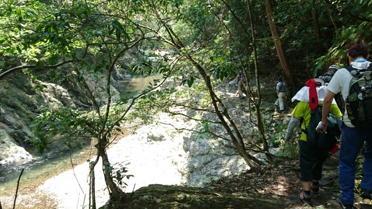 大勢のハイカーさん、ここ清滝川の渓谷美を見ながらのハイキング最高! |