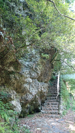 少しだけ先に進み、引き返してこの階段で上の一般道に上がる |