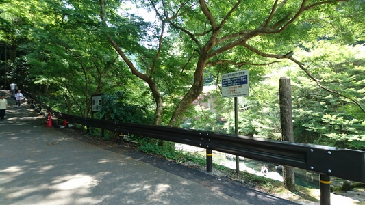 保津峡駅の下を流れる桂川の河川敷に下りようと左側の道に入る |