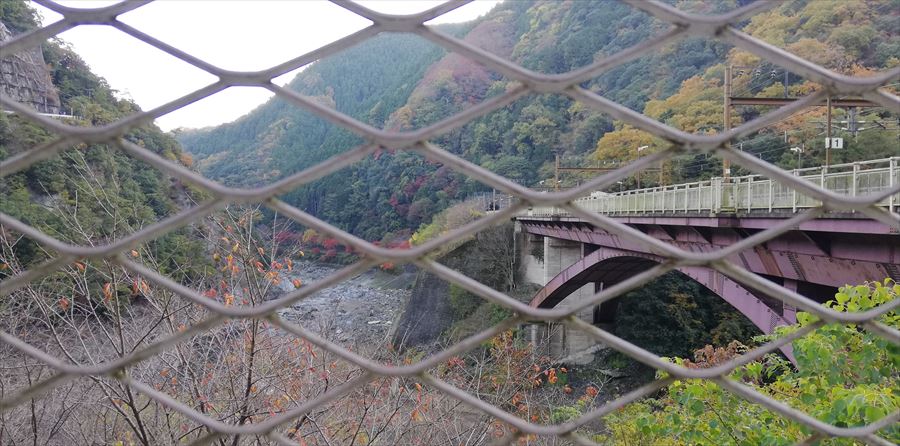 ![]() 今回のハイキング出発地点「JR保津峡駅」に向かう電車の中からトンネルが開いた鉄橋部分の短い区間に運よく撮れた 前方の水路状の所まで無謀な「立ち泳ぎ」も必要となるやらで更に奥(上流)にあるトロッコ亀岡駅付近から素手の川下り を試みたことが有りましたね。 敢え無くギブアップ!断念・・・なんと目標コースの5〜6分の一位だったかも