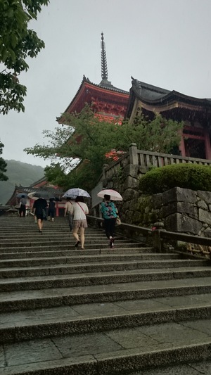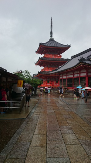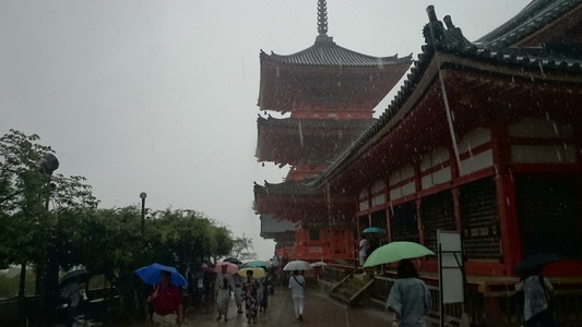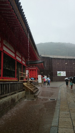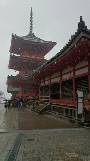お土産商店街を抜け清水寺へ。 ところが急に大雨。