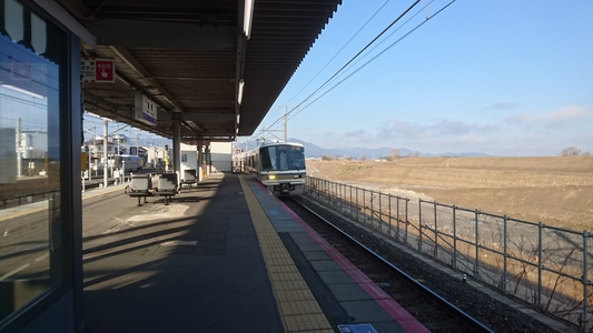 JR亀岡駅(嵯峨野線・・山陰本線)・・小生にとって本年の初乗り列車が来た |