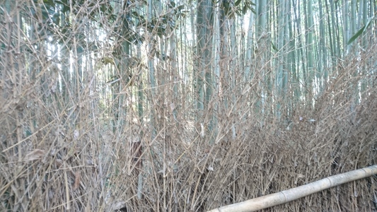 古都京都の人気の観光スポット〜竹林の小径・小道・小路、海外観光客多し 小径沿いの竹並みもイイが、奥にも竹林が控えています |